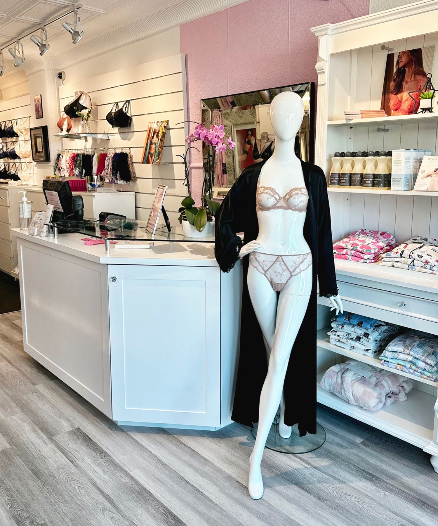 Located in a quaint historic building in the heart of Oakville's charming downtown shopping area, the shop delightfully combines its vintage heritage with our signature, chic, boudoir-inspired style. The petite but efficiently-designed space sets the stage for a lingerie shopping experience unlike any other.